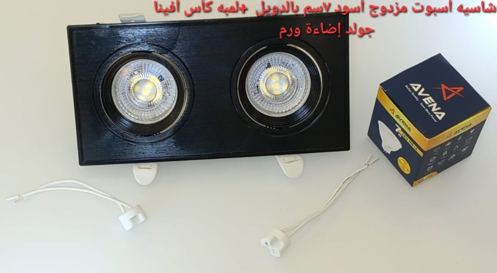 / شاسيه اسبوت مزدوج أسود 7سم بالدويل+لمبه كأس افينا جولد إضاءة ورم