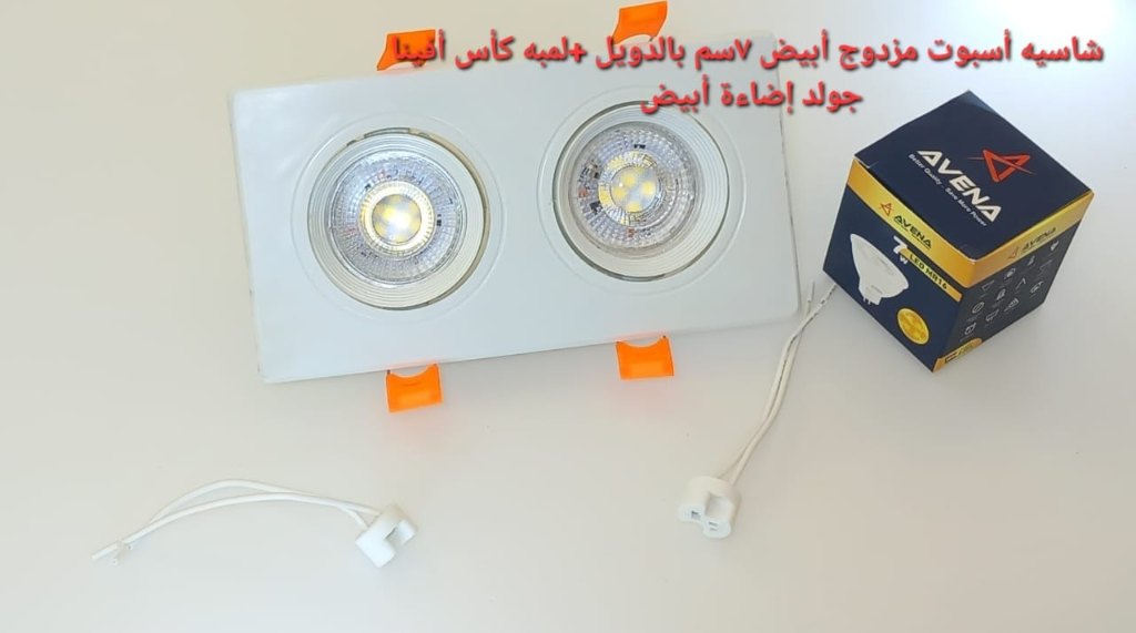 شاسيه اسبوت أبيض*فضي 7سم شاسيه اسبوت اسود*دهبي بالدويل+لمبه كأس افينا جولد إضاءة ابيض