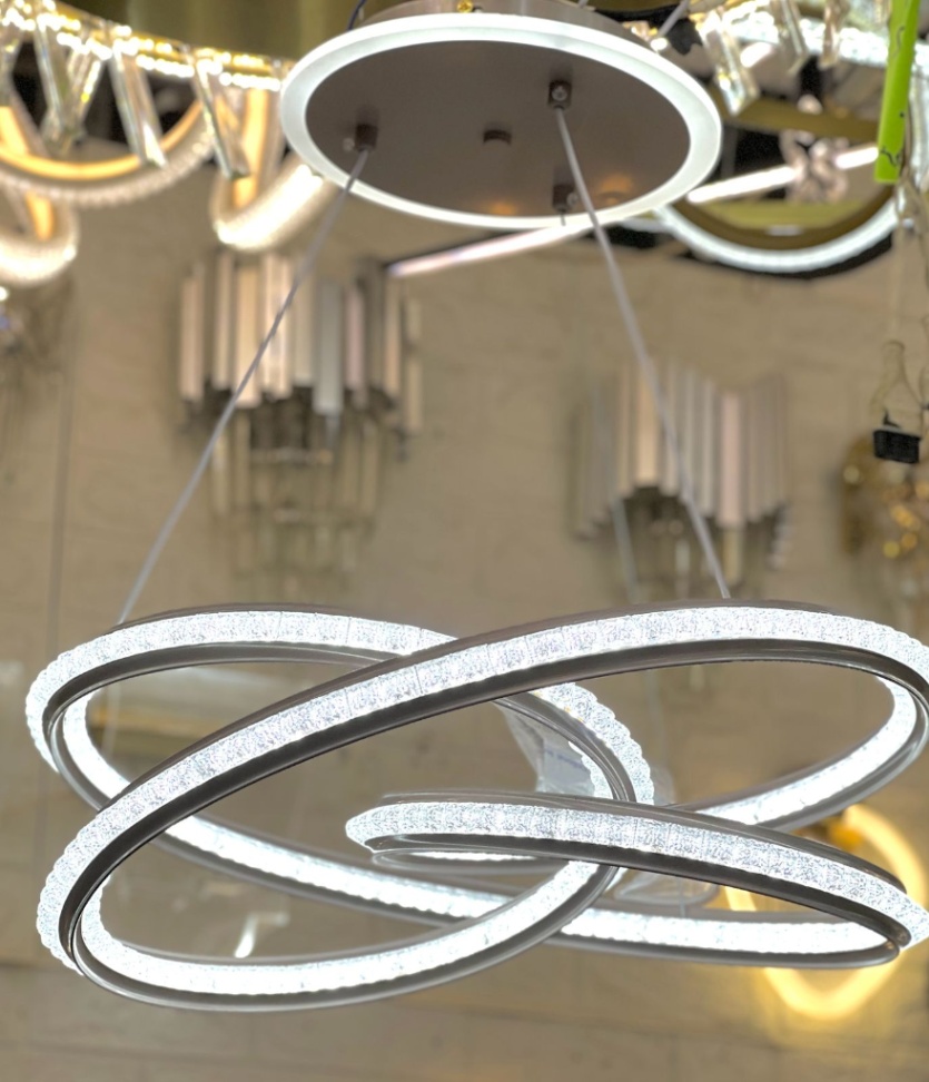 / نجفة ليد 3 إضاءه بالريموت كود 110 اطار لون بلاتيني