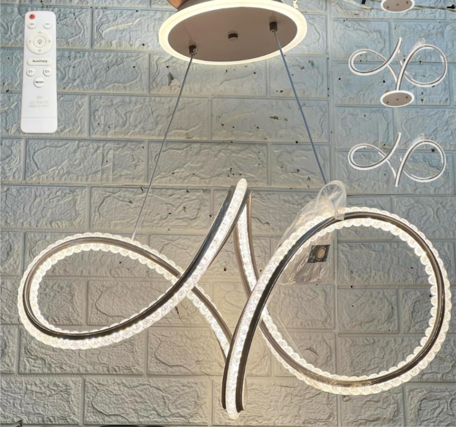 نجفه ليد 3 إضاءه بالريموت كود 011 اطار لون بلاتيني