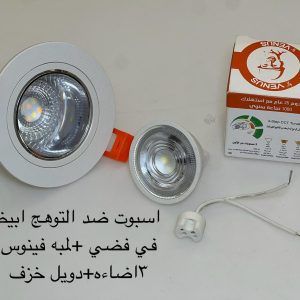اسبوت ضد التوهج فضي x فضي لامع + لمبة فينوس 3 إضاءة + دويل خزف